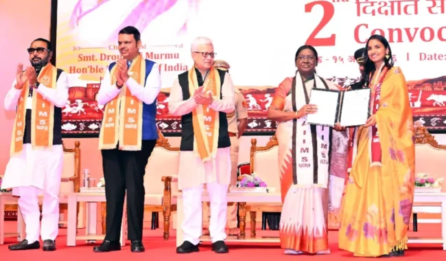 15 अप्रैल, 2026 को राष्ट्रपति श्रीमती द्रौपदी मुर्मु महाराष्ट्र के नागपुर में एम्स नागपुर के दीक्षांत समारोह में शिरकत की और संबोधित किया। उन्होंने कहा कि चिकित्सा क्षेत्र केवल एक पेशा नहीं है; यह संवेदनशीलता के साथ मानवता की सेवा करने का मार्ग है। एक डॉक्टर न केवल बीमारियों का इलाज करता है, बल्कि बीमार लोगों के मन में उम्मीद भी जगाता है। डॉक्टरों द्वारा दी जाने वाली सहानुभूतिपूर्ण सलाह न केवल रोगी को, बल्कि उनके परिवार को भी शक्ति प्रदान करती है।