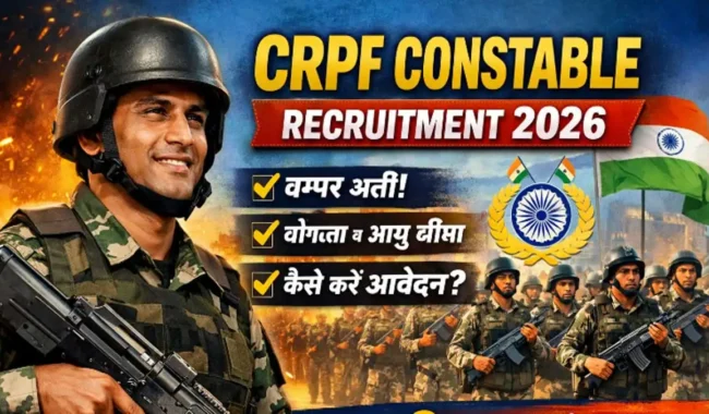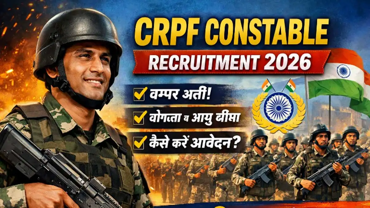 अगर आप 10वीं पास हैं और देश क सेवा करने का जज्बा रखते हैं, तो यह आपके लिए एक सुनहरा मौका है। अभ्यर्थी CRPF की ऑफिशियल वेबसाइट rect.crpf.gov.in पर जाकर ऑनलाइन आवेदन कर सकेंगे। अवेदन की प्रक्रिया 20 अप्रैल 2026 से शुरू होगी। लास्ट डेट 19 मई 2026 है।