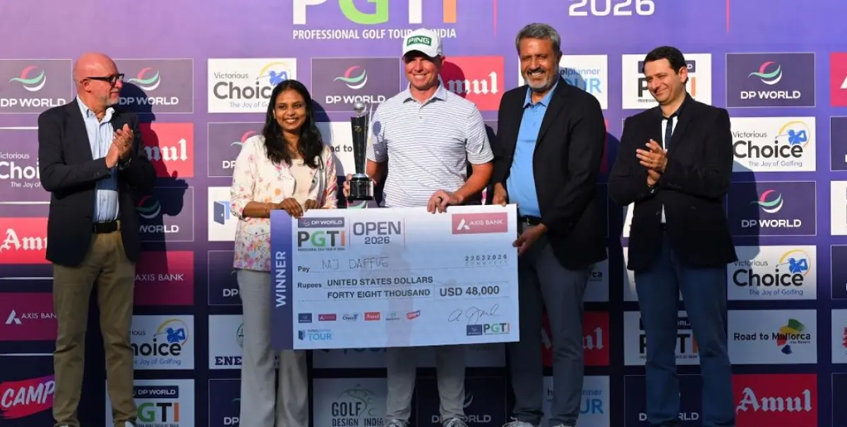 DP World PGTI Open 2026 का खिताब दक्षिण अफ्रीका के एमजे डैफ्यू ने अपने नाम कर लिया। डैफ्यू ने 69 का स्कोर बनाया और कुल 21 अंडर पार 267 के साथ समाप्त करते हुए अमेरिका के झेरेड हैक और भारत के सप्तक तलवार से एक शॉट आगे रहते हुए खिताब जीता।