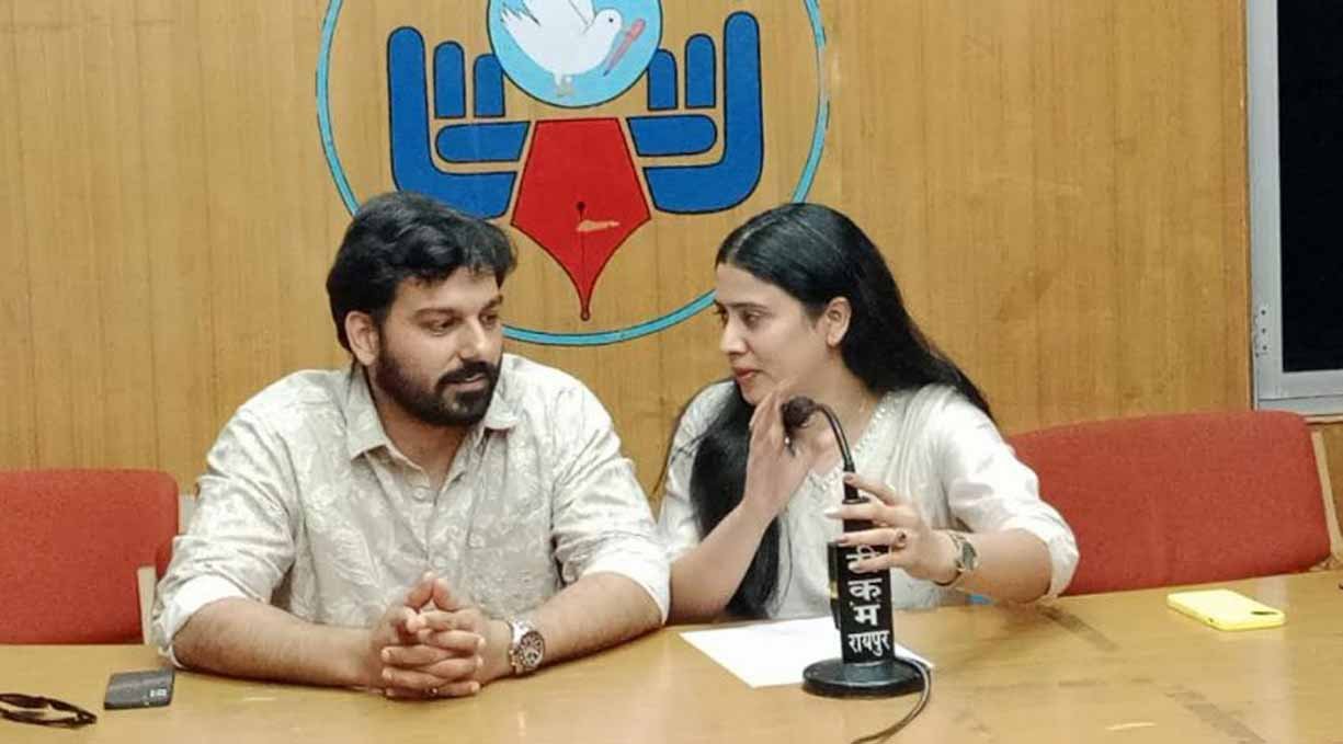 रायपुर, 3 अप्रैल 2026। छत्तीसगढ़ की राजधानी रायपुर के प्रेस क्लब में आज हरियाणा की माटी और वहां की समृद्ध संस्कृति की खुशबू महकी। अवसर था अपकमिंग हरियाणवी फिल्म सूरज लव मीनाक्षी के प्रमोशन का। यहां फिल्म के मुख्य कलाकार फिल्म के एक्टर, प्रोड्यूसर और डायरेक्टकर केशव कादियान और अभिनेत्री निशा शर्मा ने मीडिया से खास बातचीत की और फिल्म की मर्मस्पर्शी कहानी के पहलुओं को उजागर किया।