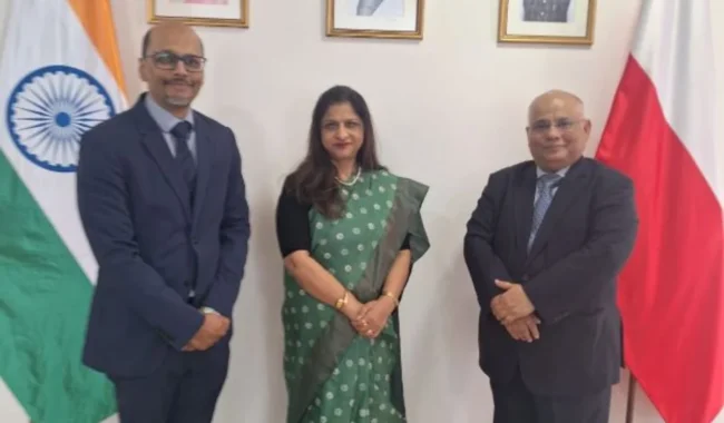 पोलैंड, 16 अप्रैल 2026। पोलैंड में नियुक्त होने वाली राजदूत सुश्री नीता भूषण ने जाने-माने विद्वानों, कारोबारियों और भारतीय समुदाय के सदस्यों के साथ सार्थक बातचीत की। इनमें भारत में पोलैंड के पूर्व राजदूत प्रो. एडम बुराकोव्स्की, टीसीएस पोलैंड के कंट्री हेड प्रबल दत्ता, इंडो-पोलिश चैंबर ऑफ कॉमर्स एंड इंडस्ट्री के अध्यक्ष जे.जे. सिंह और व्रोक्लाव में भारत के मानद कौंसुल कार्तिकेय जौहरी शामिल रहे। राजदूत का गर्मजोशी से स्वागत किया गया और चर्चाओं में भारत-पोलैंड संबंधों को और मज़बूत करने के तरीकों पर बात हुई।