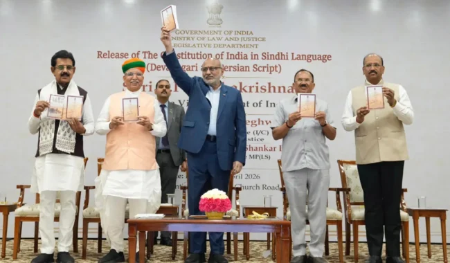 नई दिल्ली, 11 अप्रैल 2026। भारतीय संविधान अब सिंधी भाषा में उपलब्ध हो गया है। उपराष्ट्रपति सीपी राधाकृष्णन ने 10 अप्रैल 2026 को नई दिल्ली में उपराष्ट्रपति भवन में सिंधी भाषा में भारत का संविधान जारी किया। संविधान को देवनागरी और फ़ारसी, दोनों लिपियों में प्रकाशित किया गया है, जिससे सिंधी भाषी समुदाय तक इसकी पहुंच और भी आसान हो गई है।