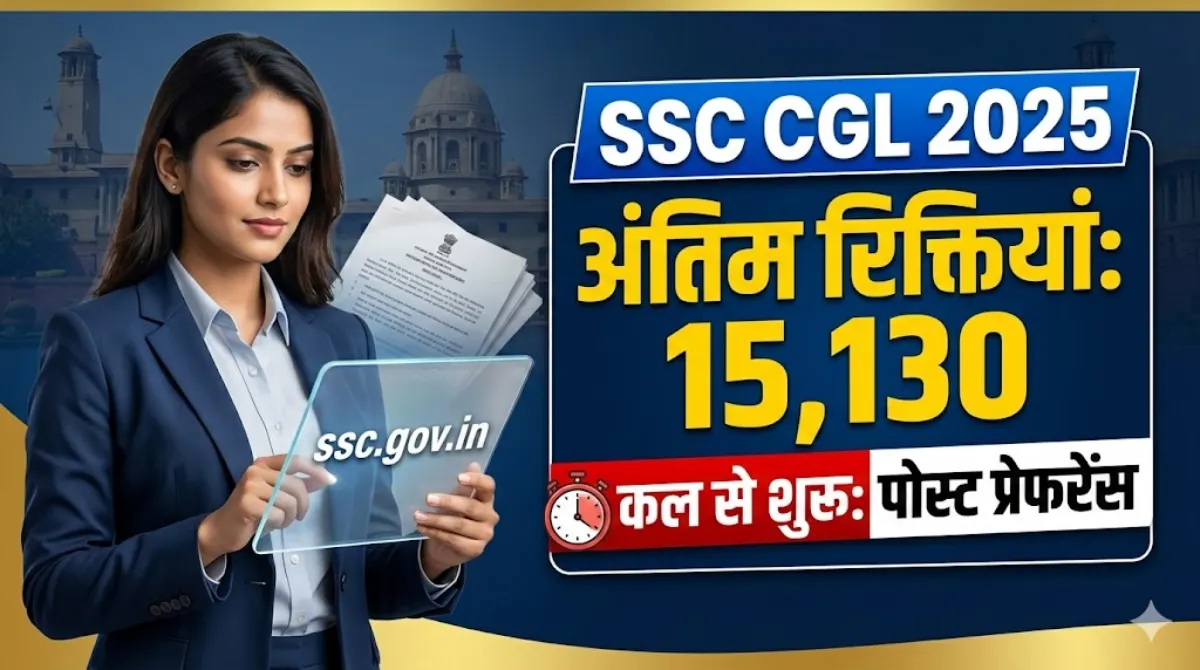 नई दिल्ली, 8 मार्च 2026। कर्मचारी चयन आयोग (SSC) ने संयुक्त स्नातक स्तरीय परीक्षा (CGL 2025) की तैयारी कर रहे उम्मीदवारों के लिए एक बेहद महत्वपूर्ण नोटिस जारी किया है। आयोग ने इस भर्ती प्रक्रिया के तहत भरी जाने वाली 15,130 अंतिम रिक्तियों (Final Vacancies) की सूची आधिकारिक वेबसाइट पर अपलोड कर दी है।